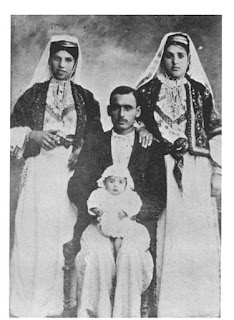 Villagers from Deir Yassin, 1927. Building contractor Haj Ahmad al-As'ad with his son Muhammad, his wife (resting her hand on his shoulder), and a relative.
